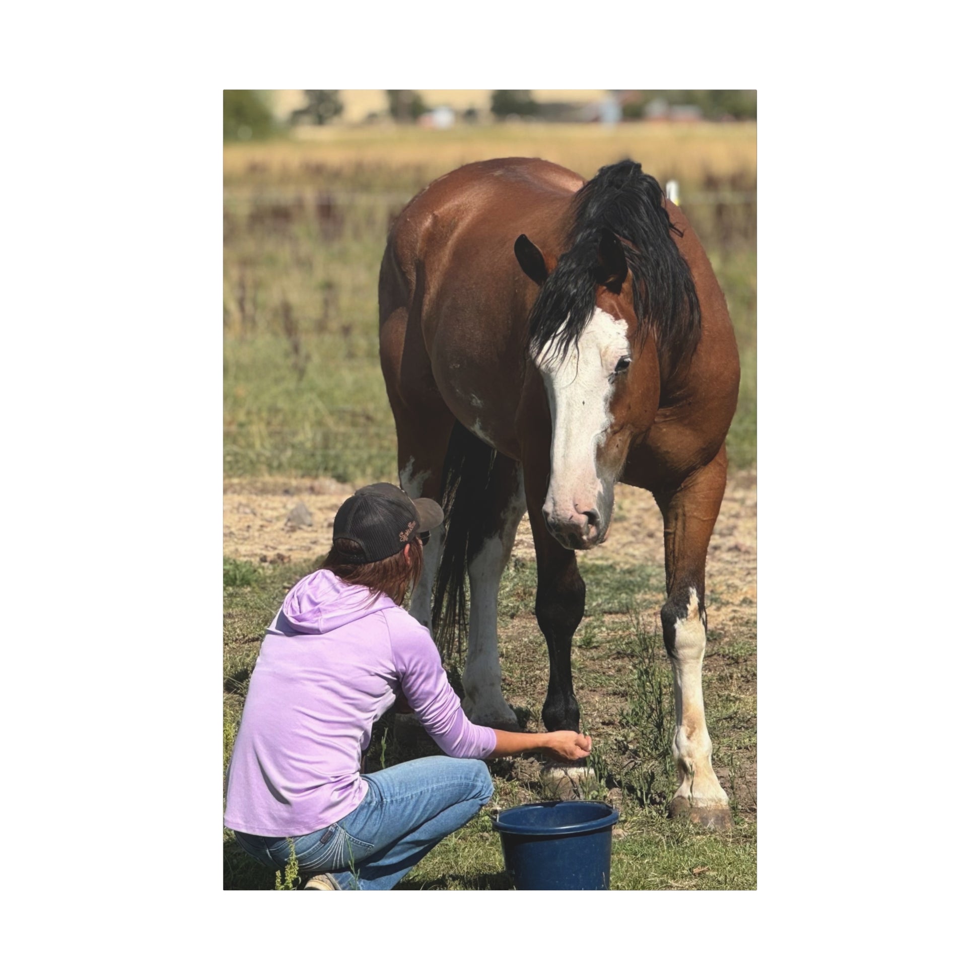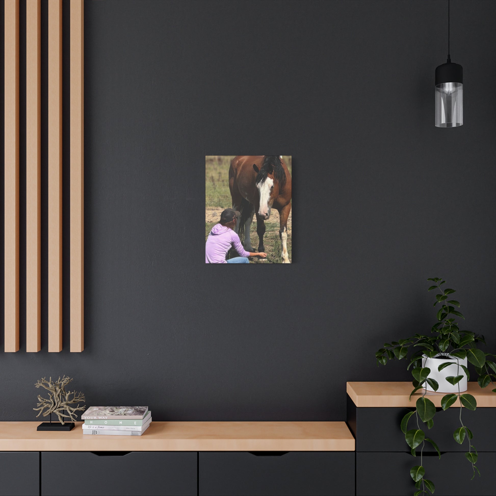 This stunning Matte Canvas print brings life and warmth into any space, perfect for horse lovers and those who appreciate the beauty of nature. Its vibrant colors and unique design make it an eye-catching addition to your home decor, welcoming warmth and joy into your living room, bedroom, or office. It evokes a sense of connection with animals and the outdoors, creating a serene atmosphere that can help you unwind after a long day. Ideal for gifting on special occasions such as birthdays, housewarmings, or during holidays like Christmas and Easter, this canvas resonates beautifully with equestrians, animal lovers, and anyone who cherishes heartfelt moments with their beloved pets. Enhance your surroundings with this canvas that blends artistry with emotion, making it a perfect conversation starter.